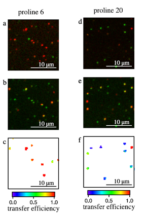 Figure 3. Single-molecule FRET (Förster Resonance Energy Transfer) measurements using a 488 nm Sapphire laser at 77 K (source: Hirschfeld, Paulsen & Hübner, The spectroscopic ruler revisited at 77 K, Phys. Chem. Chem. Phys. (2013). https://doi.org/10.1039/c3cp51106e)
